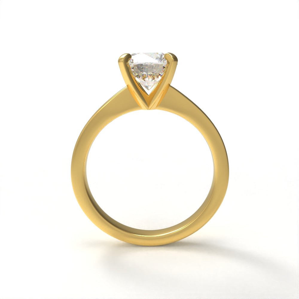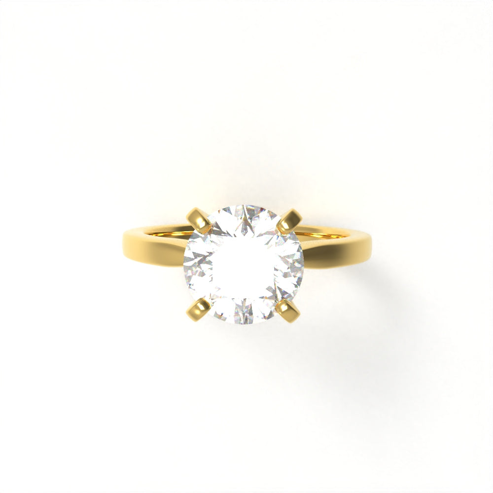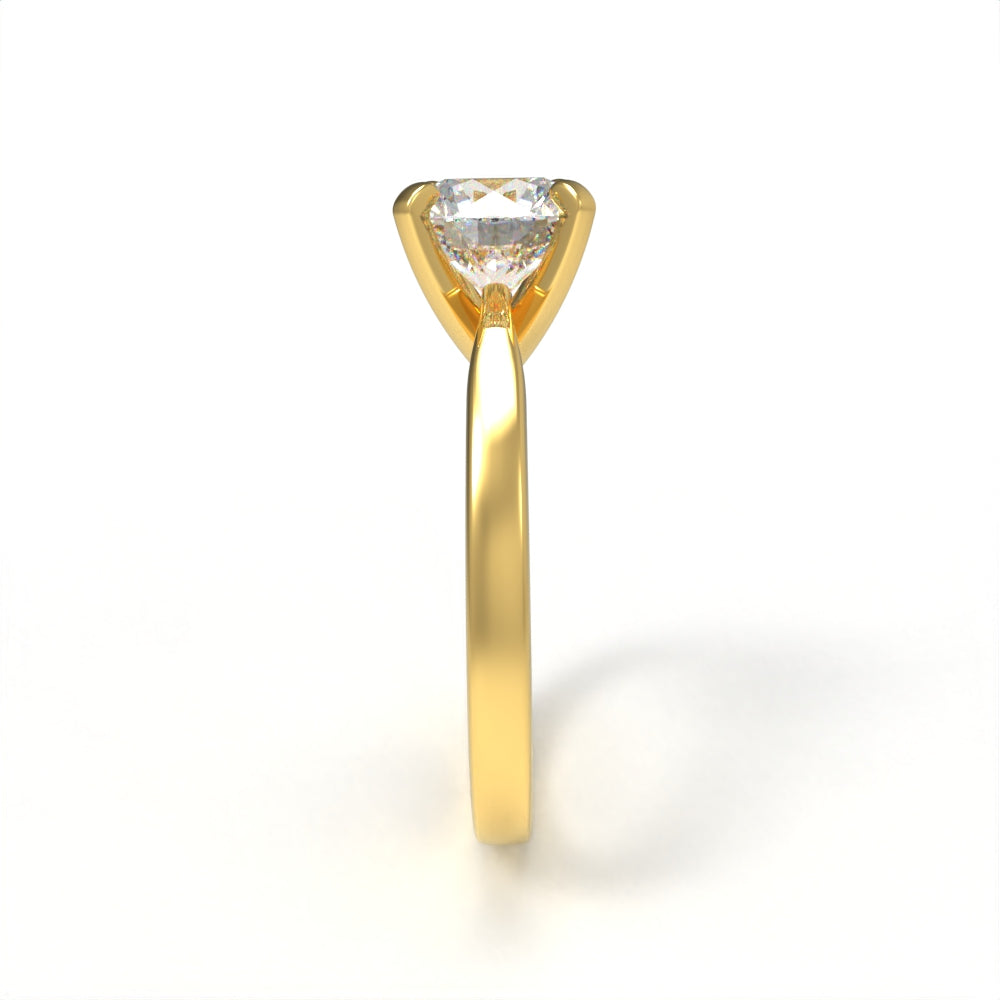 A classic solitaire engagement ring with a round-cut center stone set in a timeless 4-prong setting. Sleek, minimal, and elegant — handcrafted in 14K or 18K gold for enduring beauty.