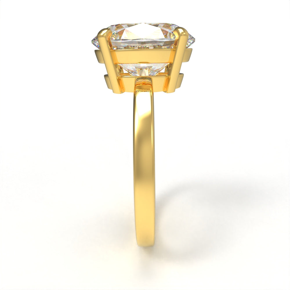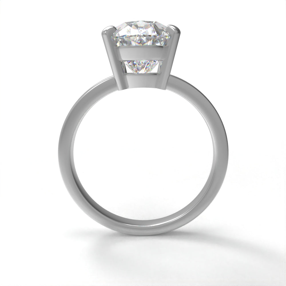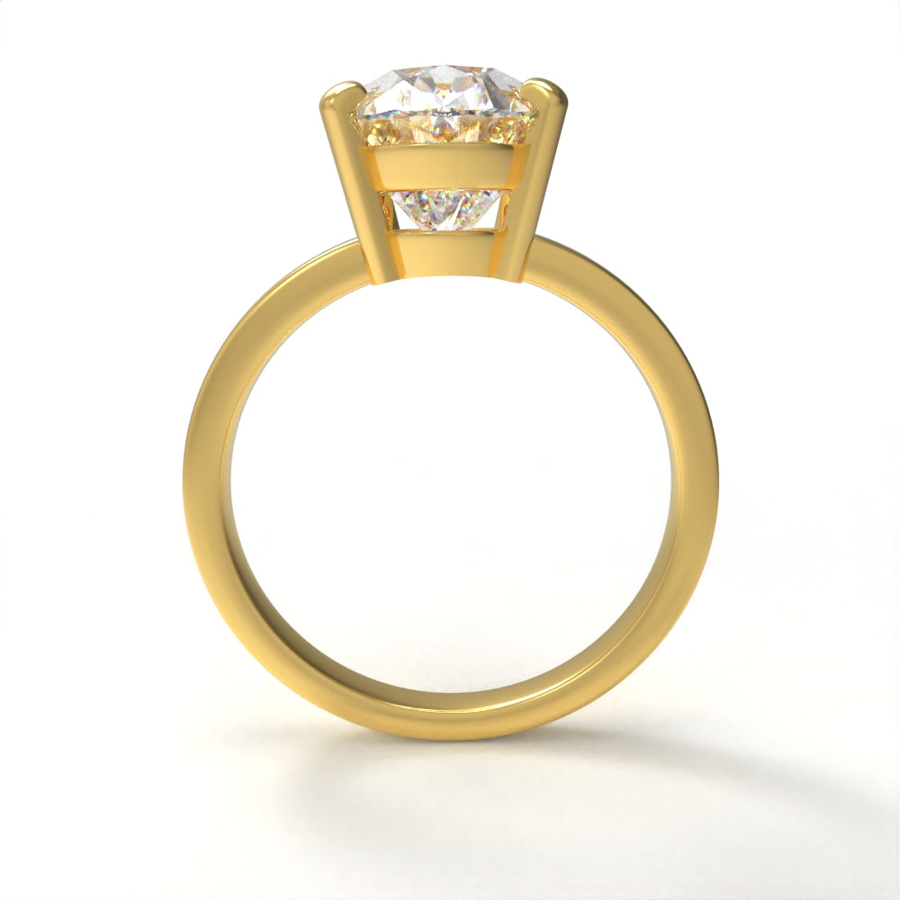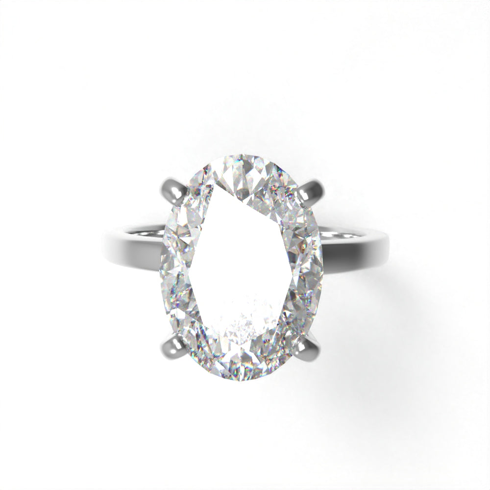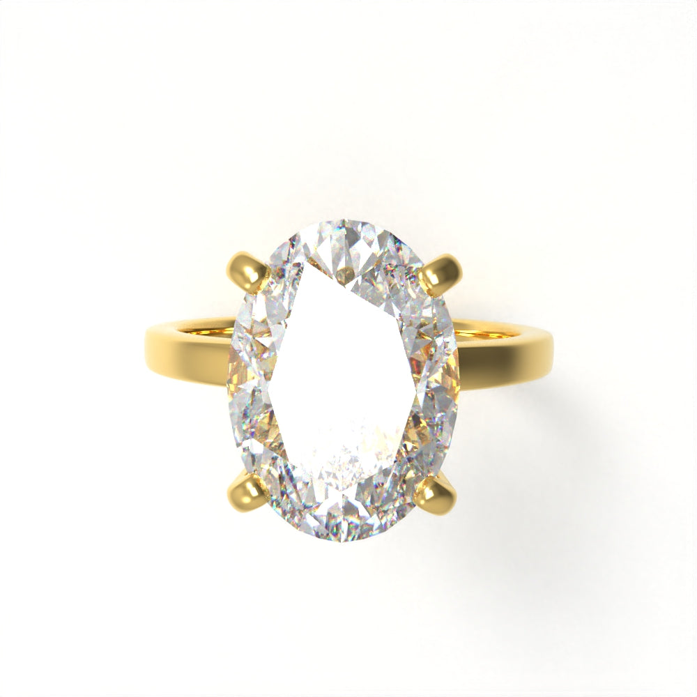 A bold solitaire engagement ring with a large oval-cut center stone set in a secure six-prong setting. Crafted in 14K or 18K gold, this classic and confident design celebrates pure brilliance.