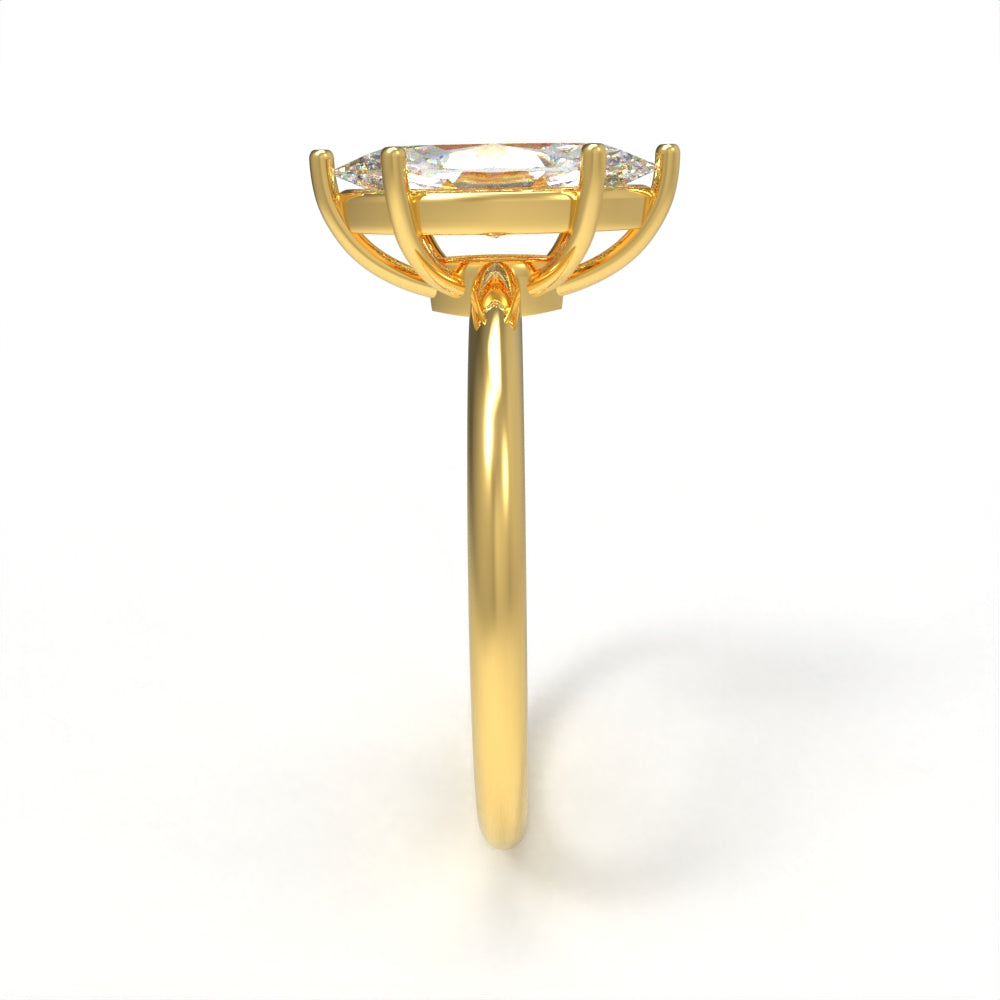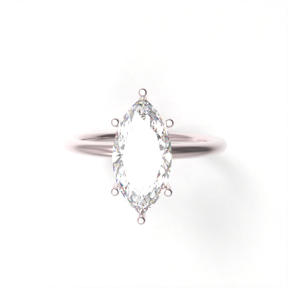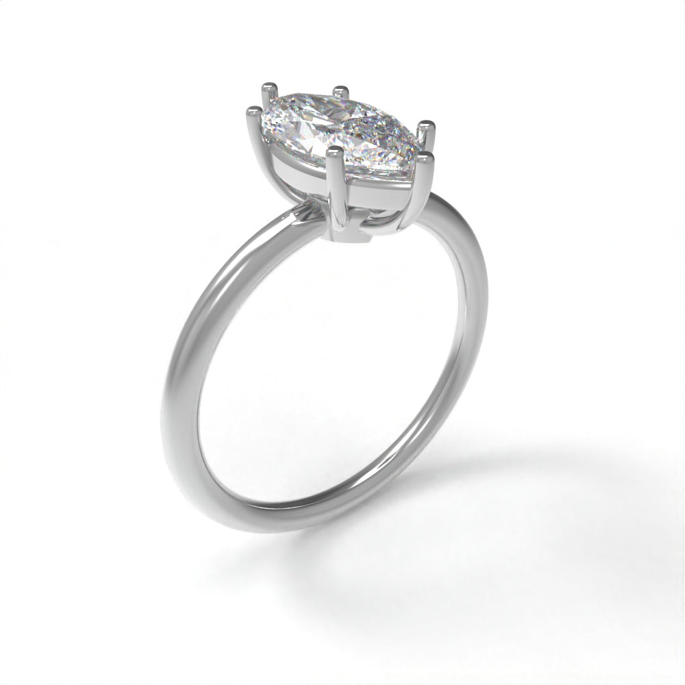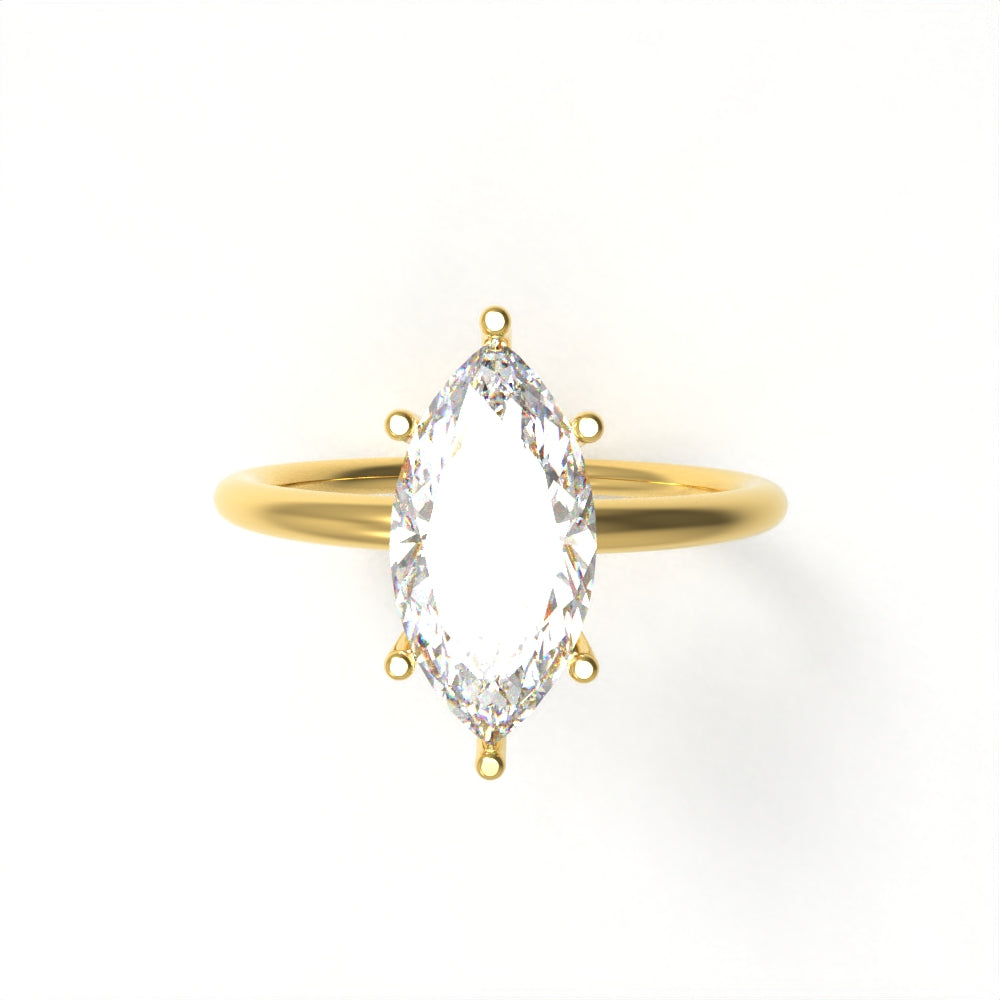 A sleek solitaire engagement ring showcasing a marquise-cut center stone in a secure six-prong setting. Clean, modern, and timeless — crafted in 14K or 18K gold for elegant simplicity.