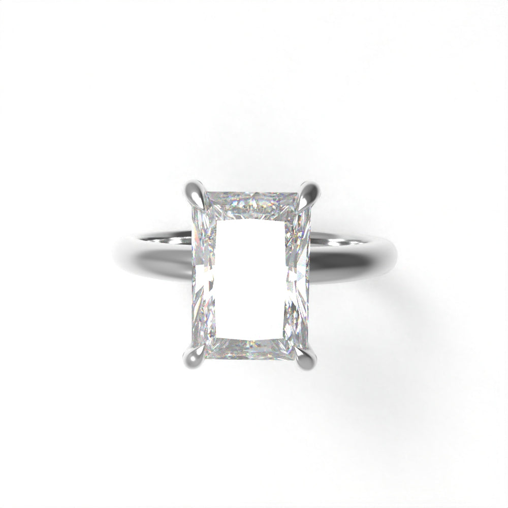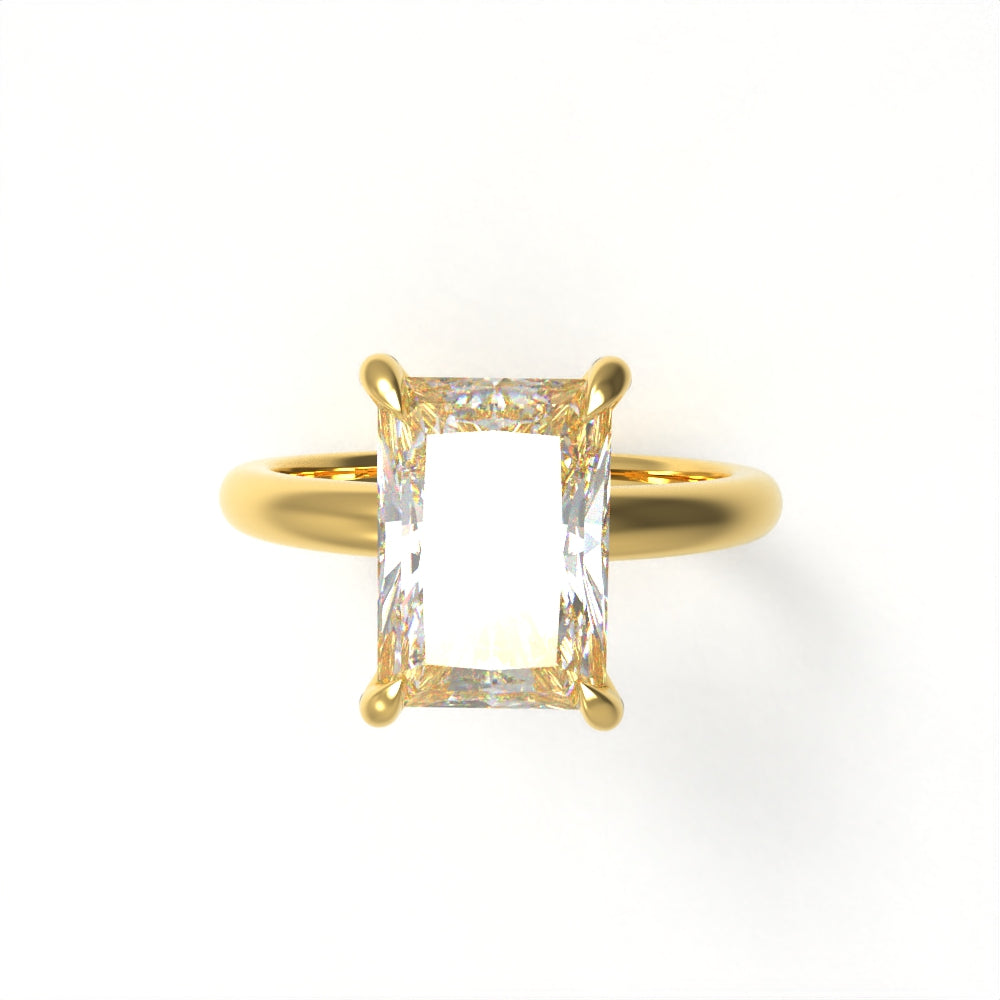 A striking solitaire engagement ring featuring a princess-cut center stone set diagonally for a modern twist. Minimalist yet bold, crafted in 14K or 18K gold for a sleek and contemporary look.
