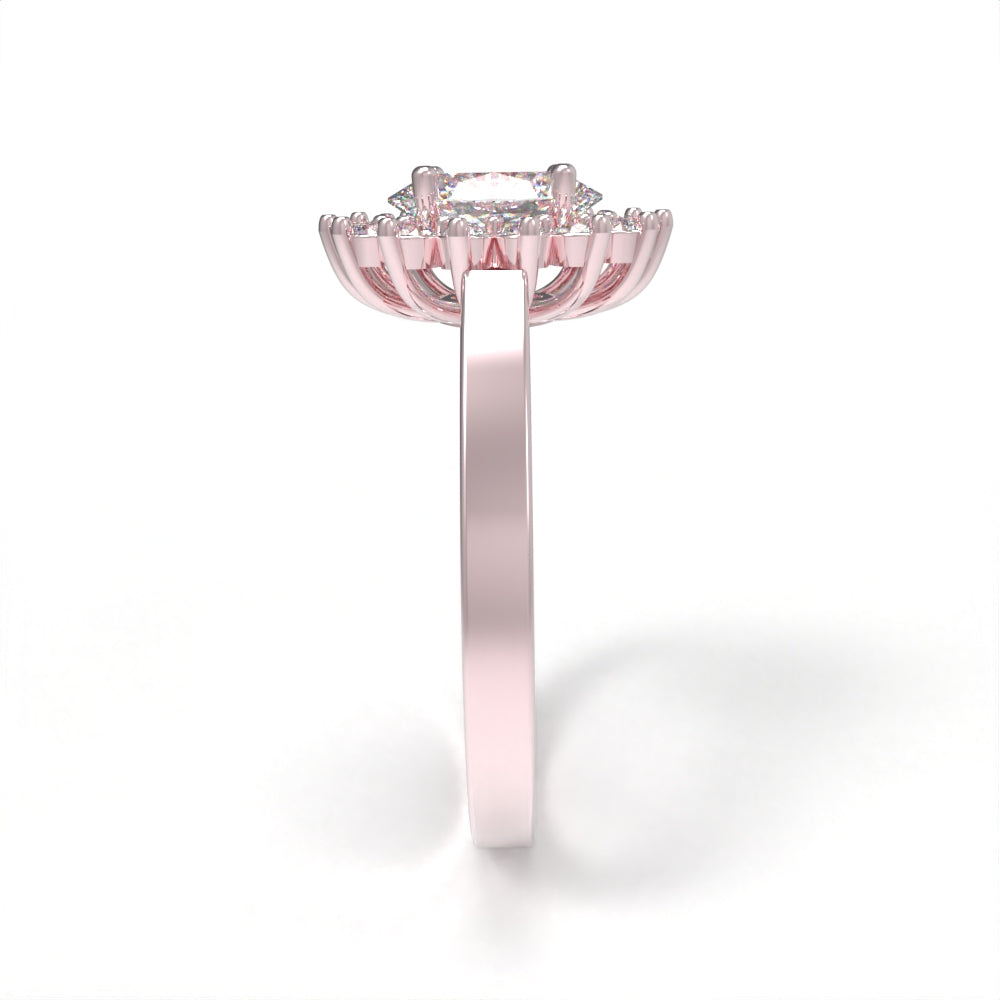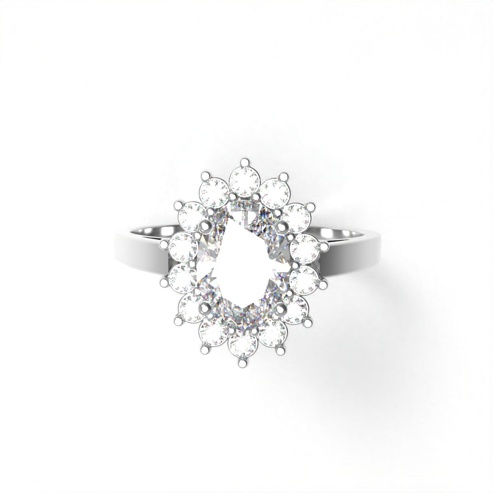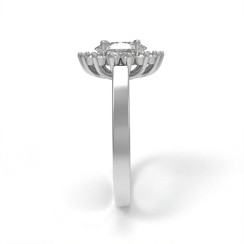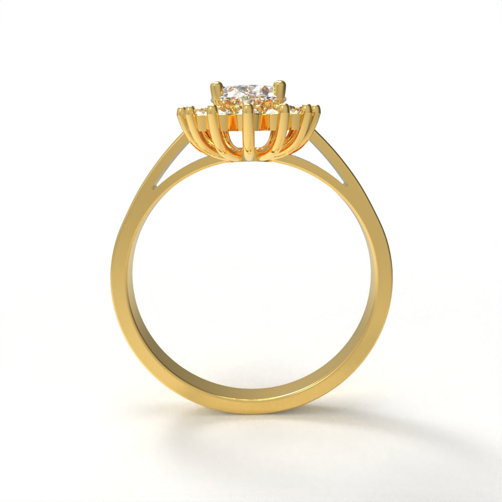 A glamorous halo engagement ring featuring a marquise-cut center stone surrounded by a radiant cluster of round diamonds. This vintage-inspired design, crafted in 14K or 18K gold, delivers bold sparkle and timeless elegance.