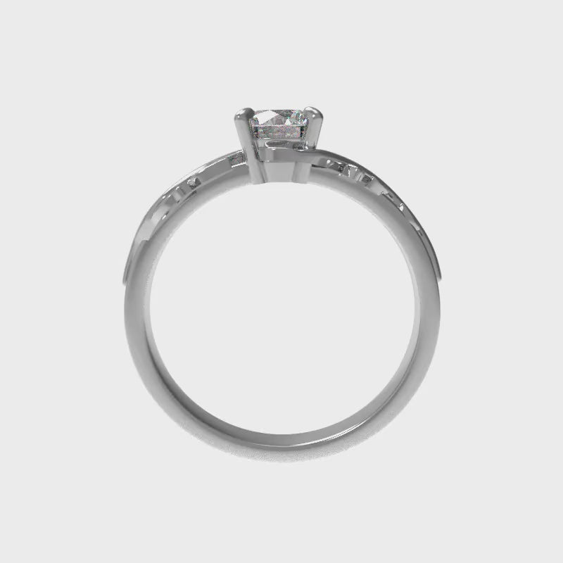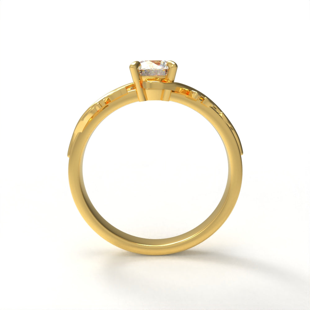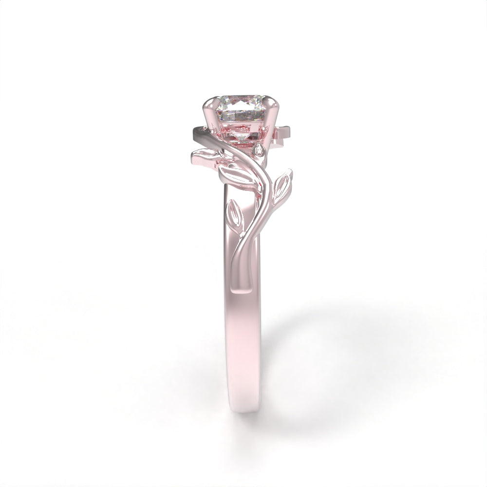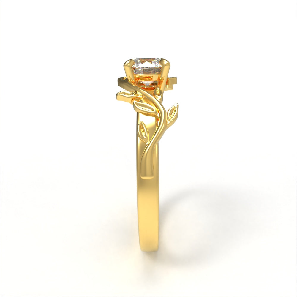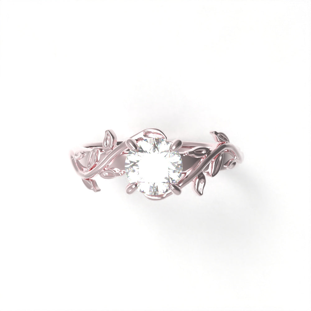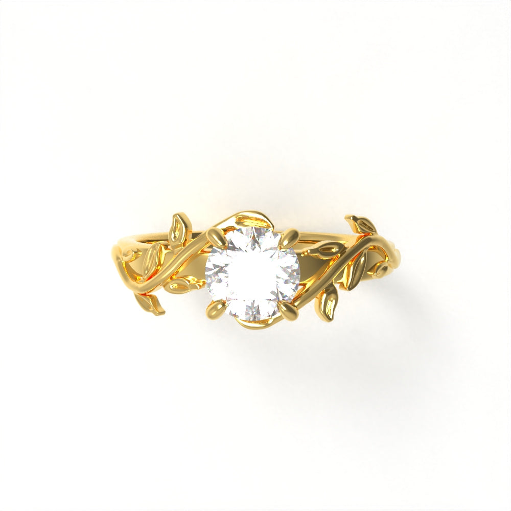 A romantic engagement ring inspired by nature, featuring a delicate vine and leaf design that flows into a round-cut center stone. Handcrafted in 14K or 18K gold, this ring captures the essence of organic beauty and timeless love.
